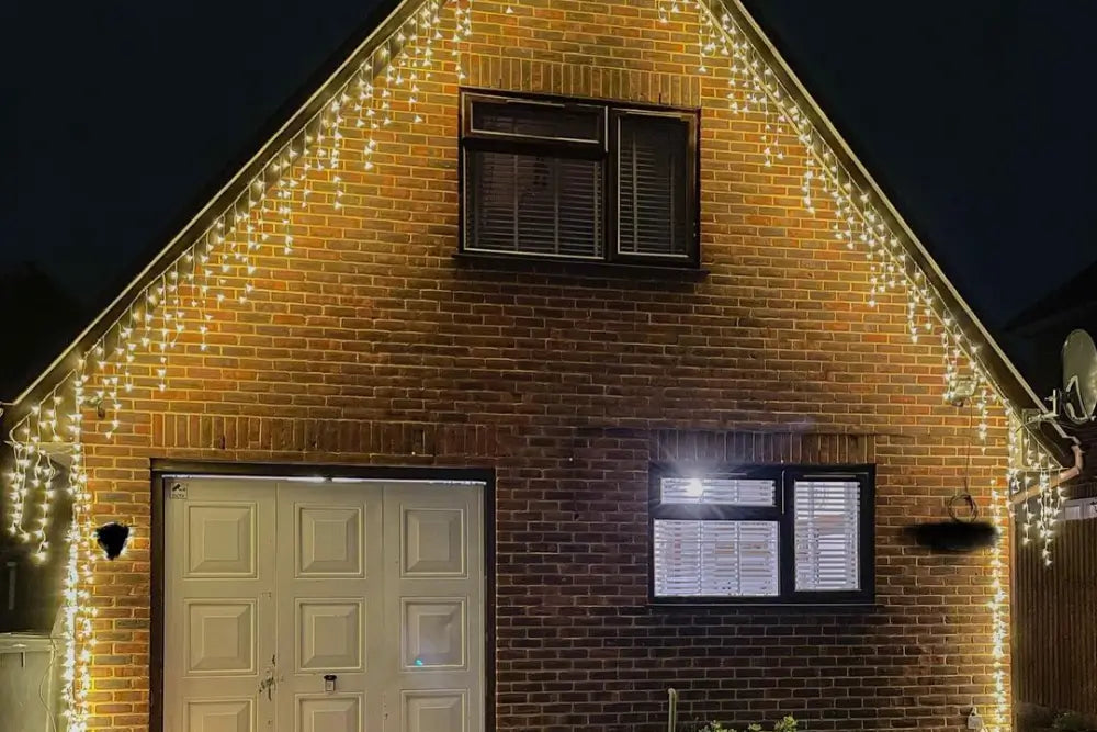With Ollny's 486 LED 40ft Warm White Christmas Icicle Lights, this creator created her own winter wonderland! The icicle lights complement her house's triangular roof, making it stand out during the freezing winter months.
