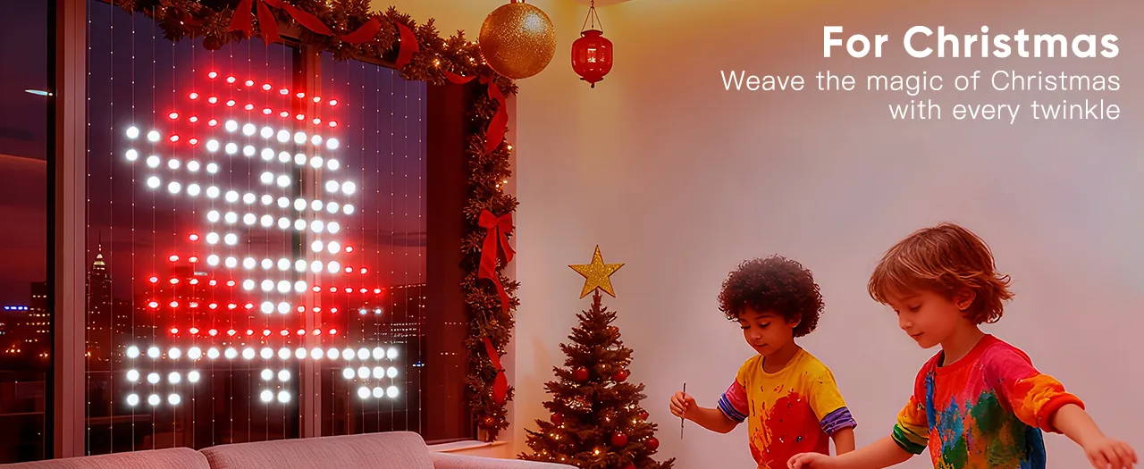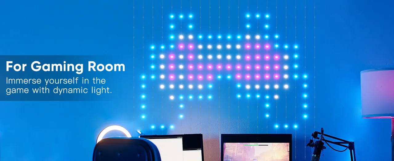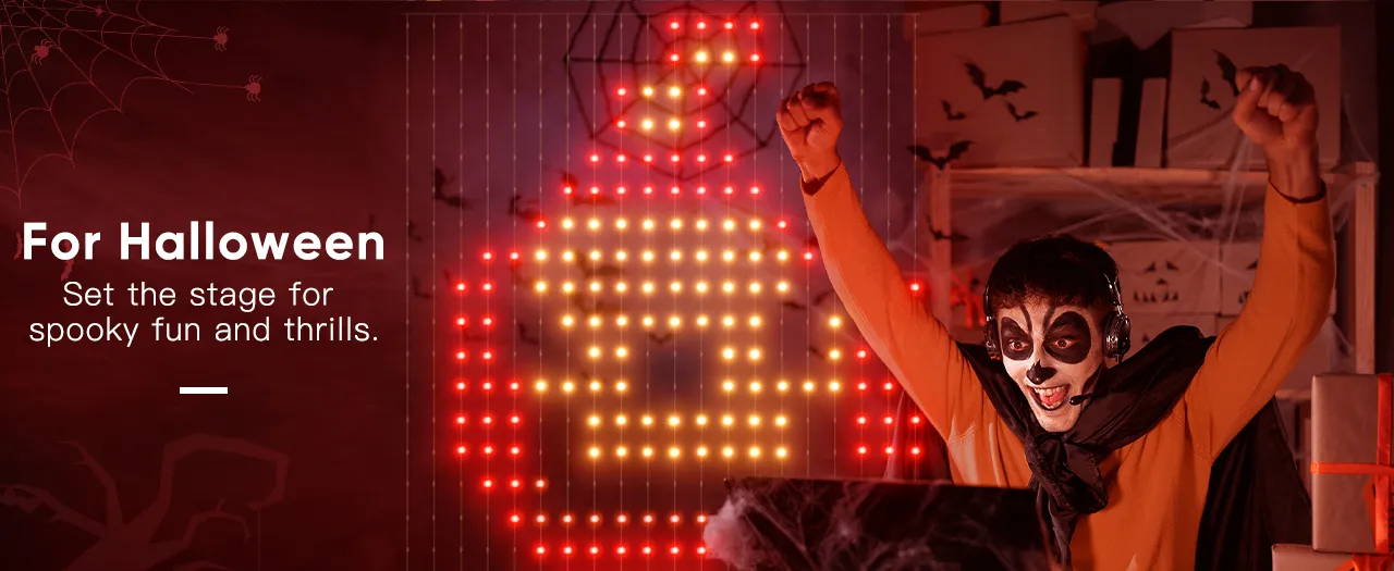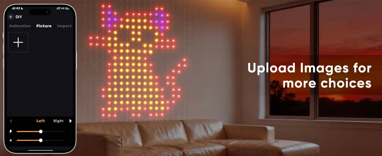 Create custom lighting designs by uploading your own images, adaptable for multiple occasions including Christmas, Halloween, gaming, and parties.