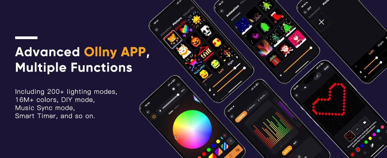 Control Ollny Smart RGBIC Curtain Lights via Ollny app - smoothly and reliably.