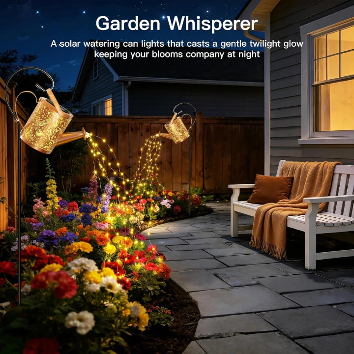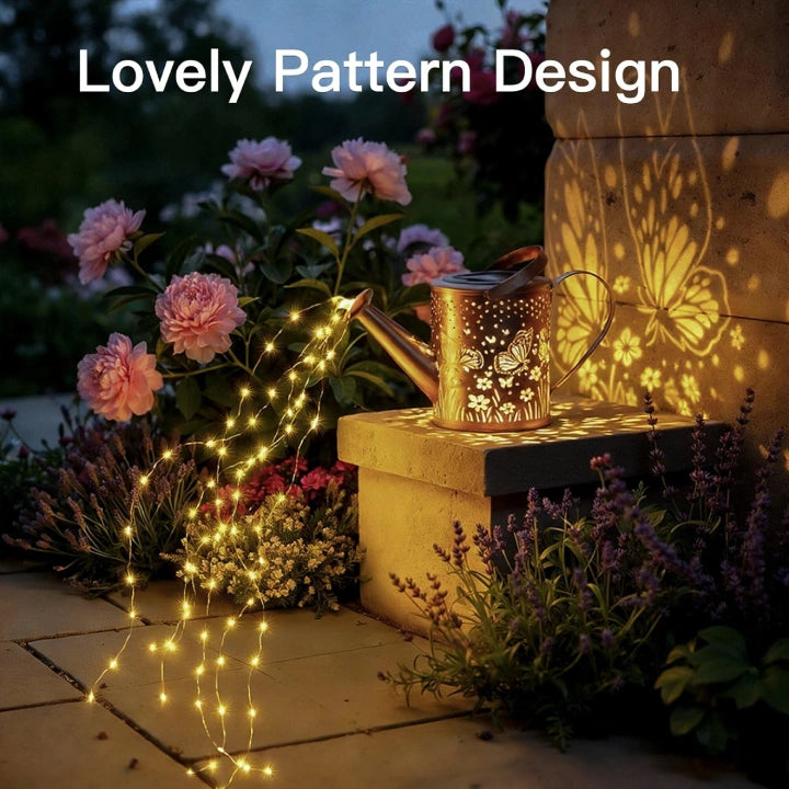 Ollny Butterfly Solar Watering Can with Cascading Lights for Outdoor, Yard, Patio, Lawn(Warm White, IP65 Waterproof, 2 Modes)