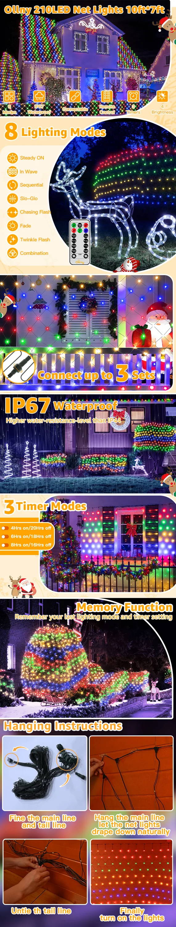Some Ollny outdoor lights have an IP44 rating which means they are protected from water sprayed in all directions. We achieve this with strong rubber cables and double sealed caps over the bulbs. And some outdoor lights are IP67 waterproof which means they can prevent rain and water. All indoor use lights are usually rated IP20. So please take a further look at every product description to confirm the IP rating.