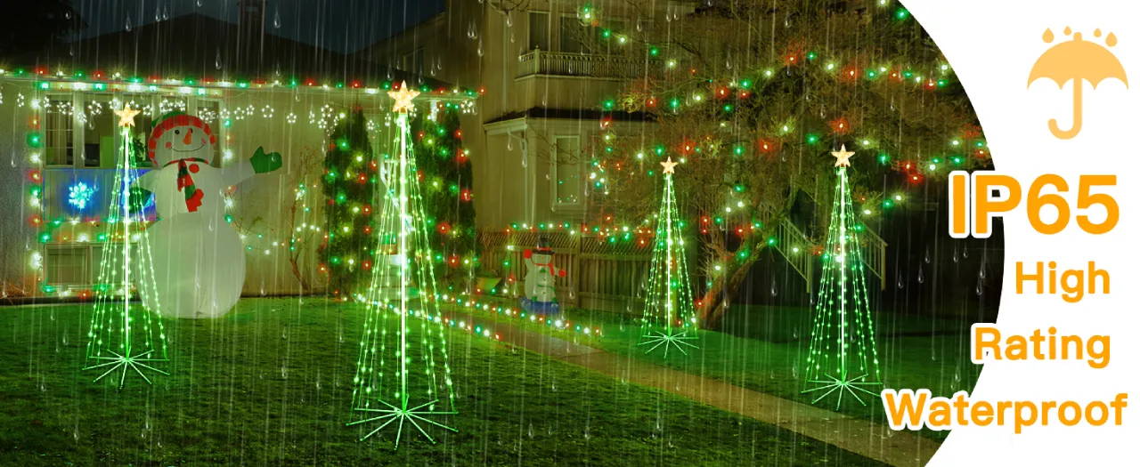IP65 Waterproof means that the led lights can work in water under 15cm to 1m. So it is no problem at all for you to use our Christmas lights outdoor even on storm days.