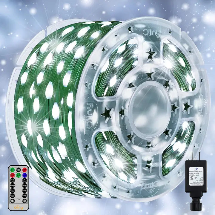 Ollny 1200 LED 393ft Cool White IP67 Waterproof Christmas String Lights (Green Wire, Plug in, 8 Modes)