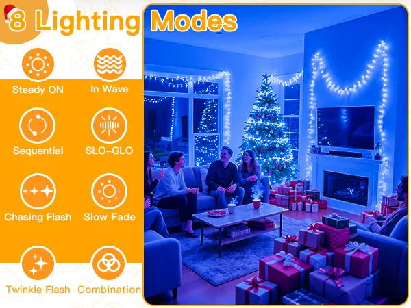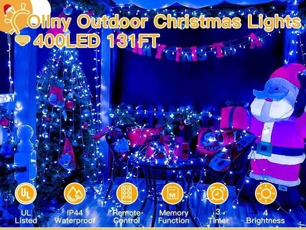 Create a mesmerizing winter wonderland with this 131ft string lights, featuring 400 enchanting blue LEDs. Effortlessly control eight dynamic modes, four brightness levels, and automated timers via remote for a stunning, waterproof holiday display.