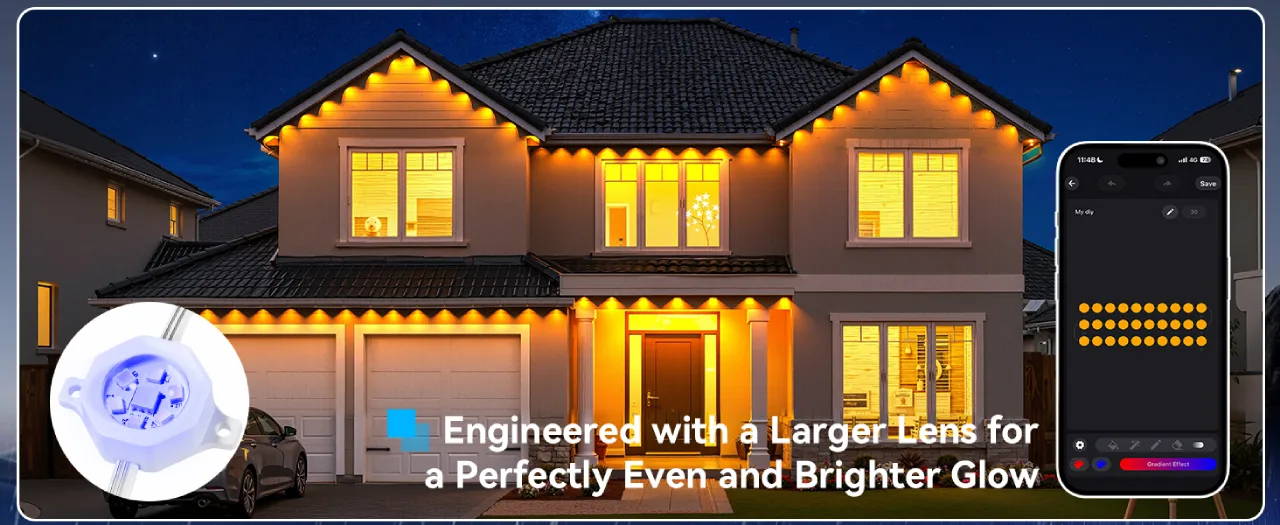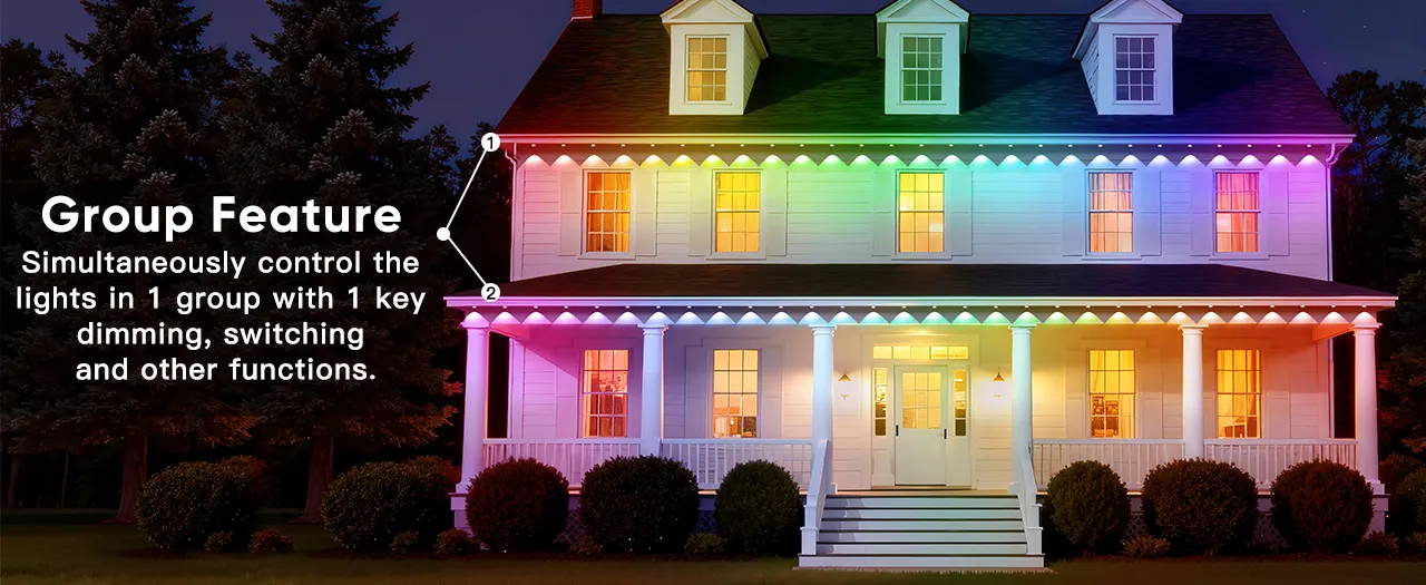 1*Ollny Smart RGBICW Permanent Outdoor Lights, 1*Remote Control, 1*Plug, 1* Manual, 1* Controller, 1*Extension cord, Adhesive Cord Clips, Screws, Replacement Adhesive Strips
