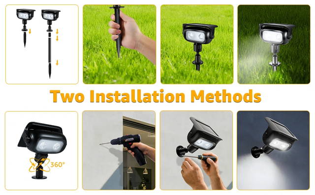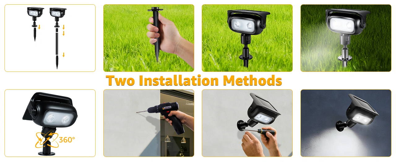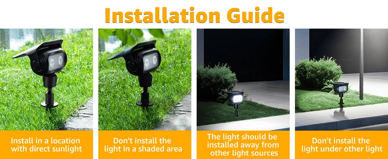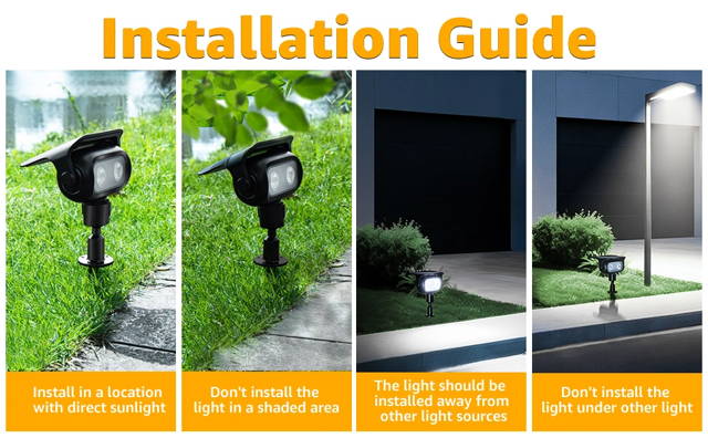 4 x Solar Spotlights, 12 x Screw, 12 x Expansion Pipe, 4 x Connecting Tube, 4 x Ground Stakes,4 x Extentable Stake, Instruction Manual